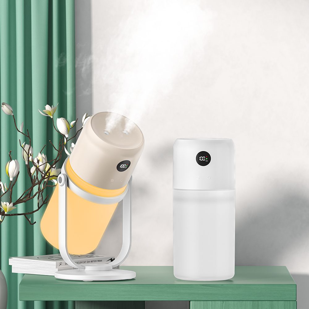 1. Timed air humidification 2. 1800 mAh battery 3. Dual-spray, high-volume mist 4. Adjustable angle