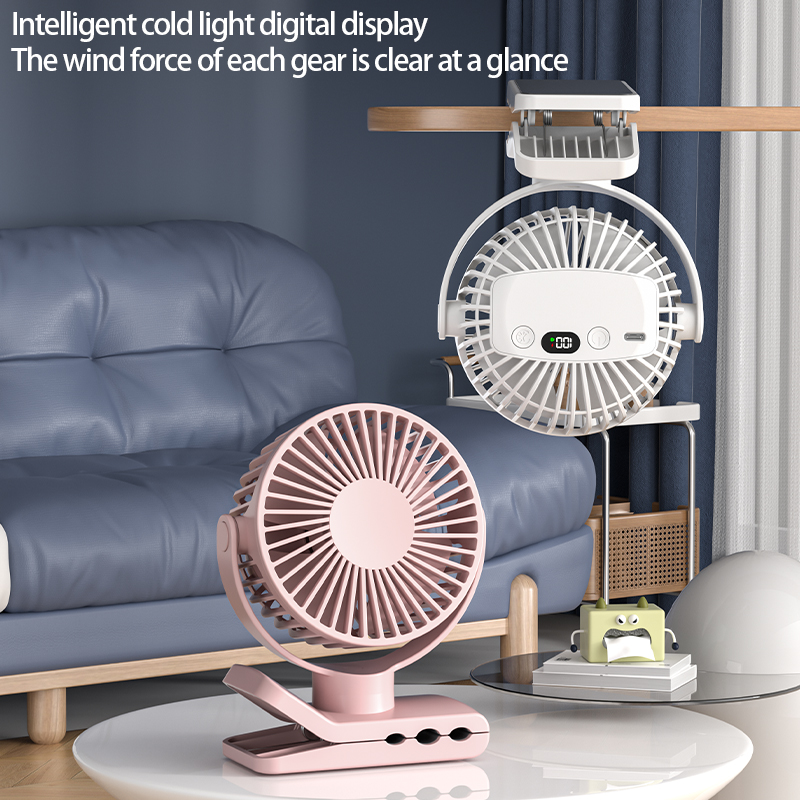 1. Three levels of wind power 2. Built-in 4000 mAh battery 3. Can be hung, stood or clamped 4. Removable and washable grille