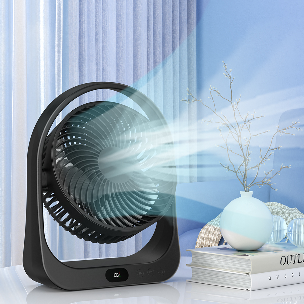 1. Removable cleaning grille 2. Manually rotates up and down 3. Adjustable wind speed 4. Built-in 4000 mAh battery